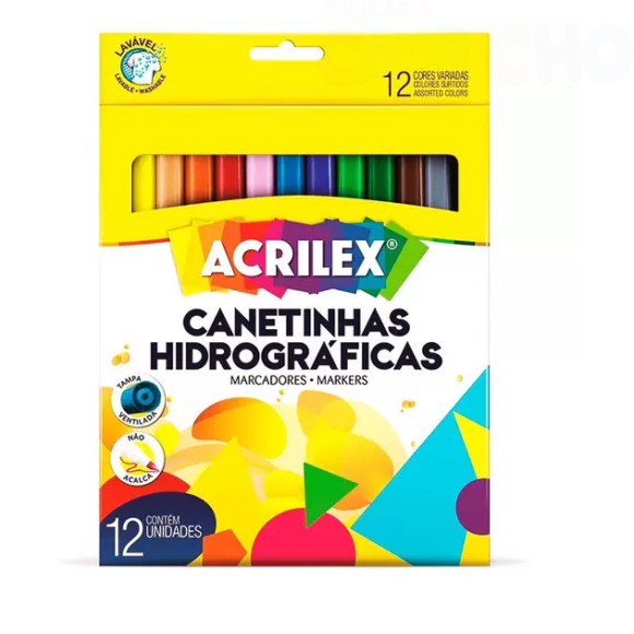 CANETINHAS HIDROGRAFICAS 12 CORES ACRILEX