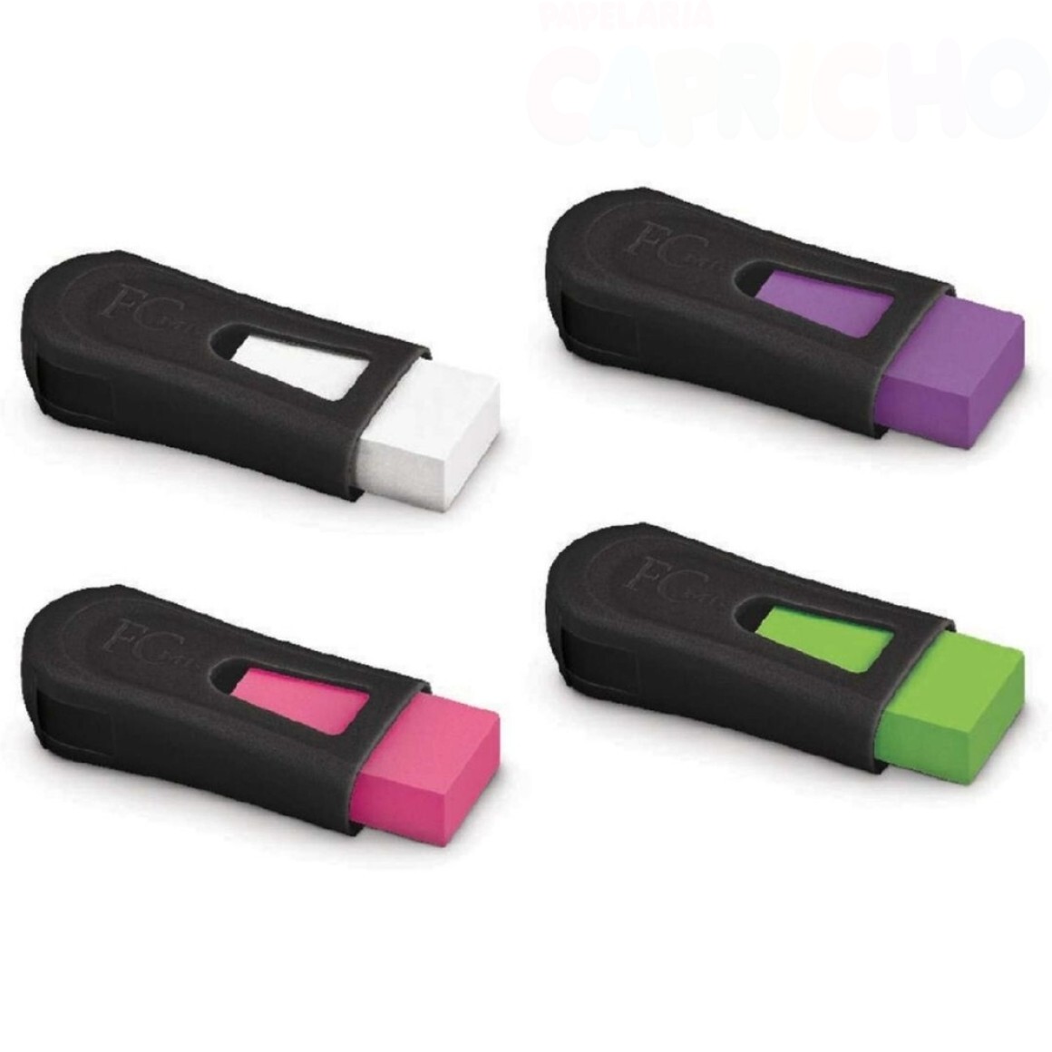 Apontador com depósito mais borracha  no mesmo produto, praticidade e conveniência ,cores  modernas e vibrantes.